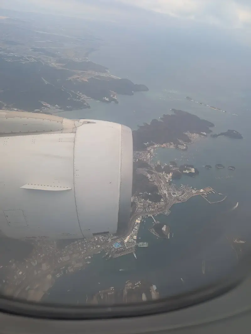 飛行機離陸後に眠りに就き、次に目が覚めたのは宮崎県の上空でした.空から日本列島を眺めるの楽しかったです!