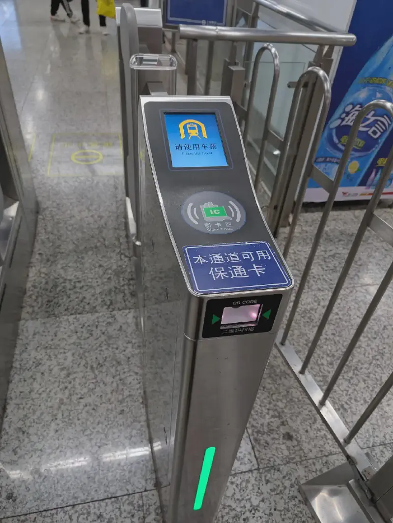 中国の改札は、WeChat や Alipay で表示させた乗車QRコードを読み取らせるか、ICカードを読み取らせるかして入退場します.