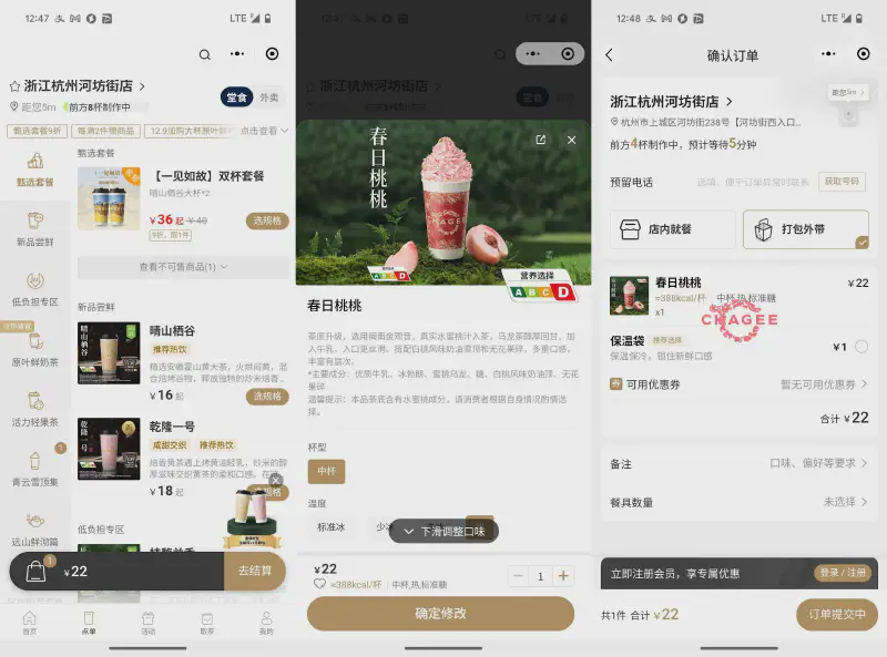 チェーン店である霸王茶姬 (CHAGEE) で「春日桃桃」を頼みました.