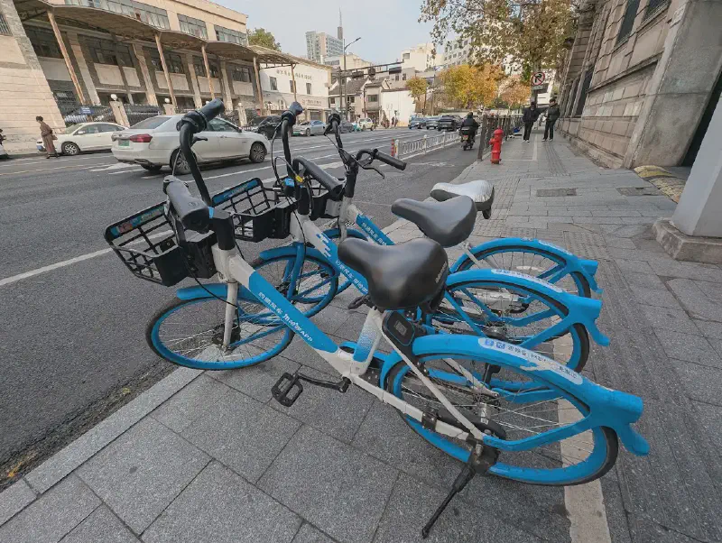 さて、龙翔桥駅のある方へ戻ります.歩くのが面倒なので、自転車に乗りました.水色の哈啰 (Hello Bike) は外国人でも乗ることができます.