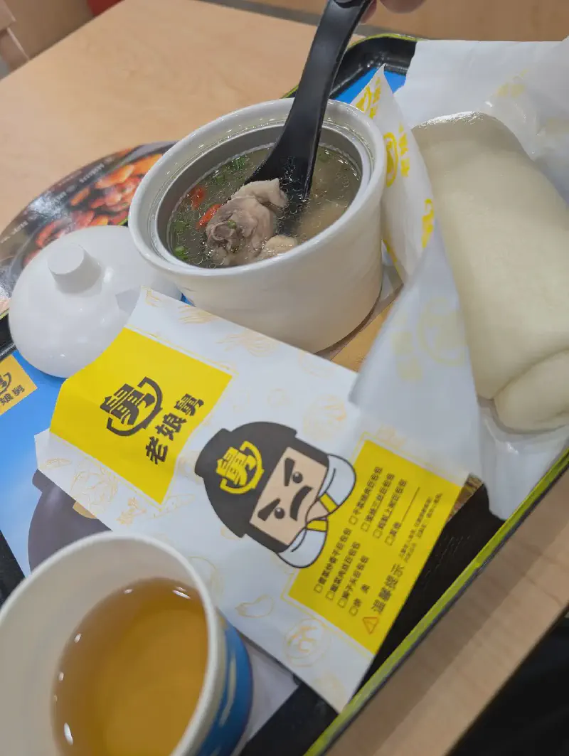 「老娘舅」という中華ファストフード店をお勧めされたので行ってきました.お腹が空いていなかったので小さめの「原味鸡汤」と「酸菜肉丝巨包包」を注文.