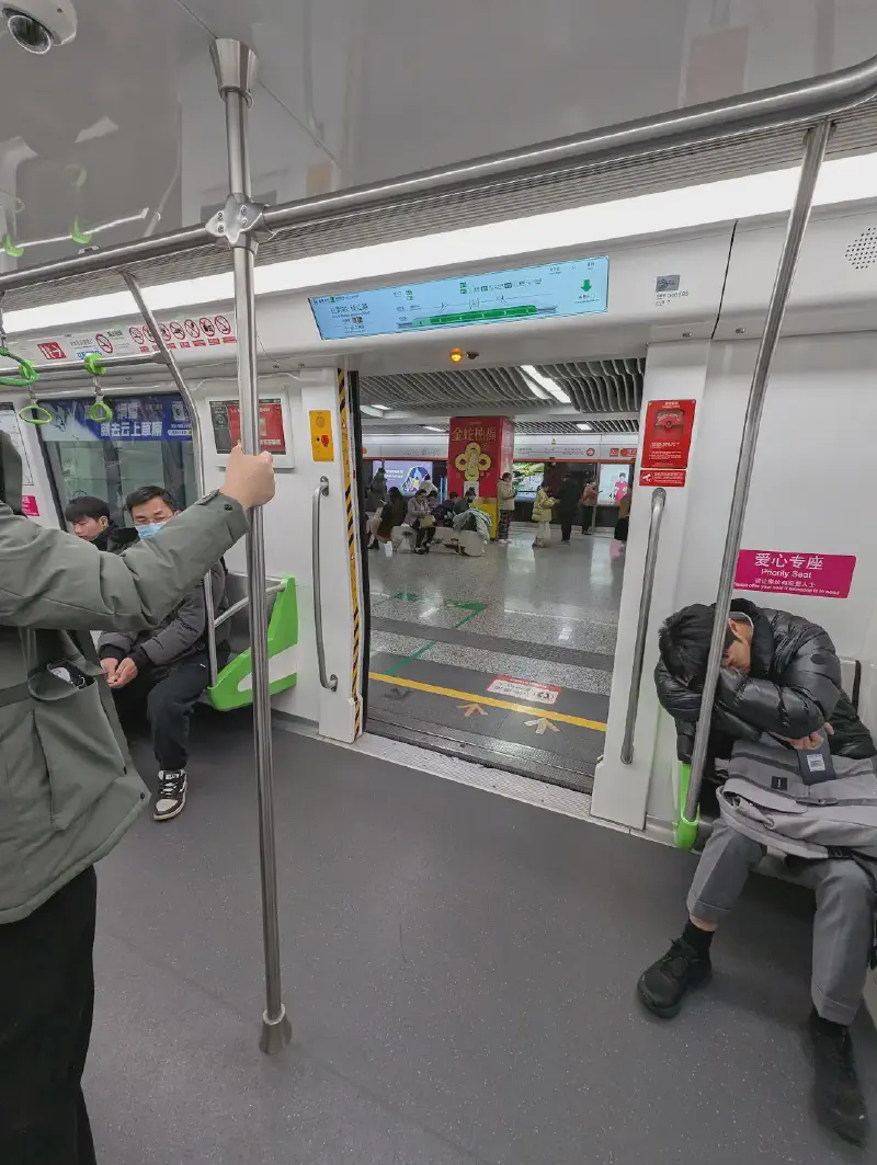 中国は地下鉄で居眠りができるくらいには治安が良いです.皆さんスマホ弄りに夢中です.
