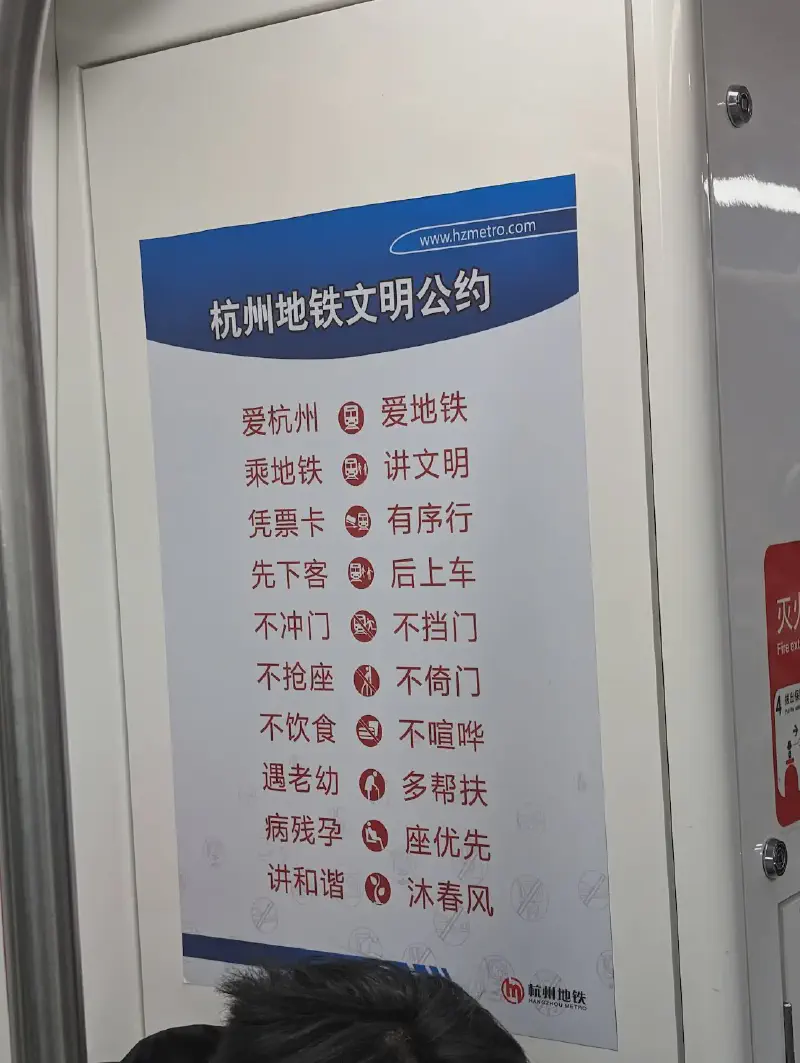 杭州地下鉄の公約.中国語は少ない字数で情報を伝えられてカッコいいです.日本語は可愛い言語だと思っています.