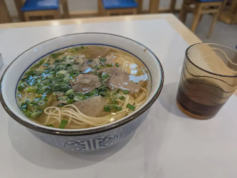 ホテルの近くにある、3日目に朝食を食べたのと同じお店(兰宴巷兰州牛肉面)で、一番人気だと言う「牛骨清汤牛肉面」を頼みました.