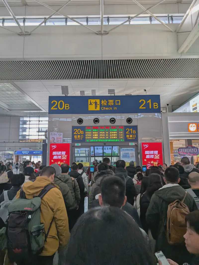 改札口の電光掲示板で、自分の乗る列車が「正在检票」になったらゲートを通過してホームに行くことができます.ゲートで再びパスポートを読み取らせます.どのゲートでもパスポートの読み取りに対応していると思います.