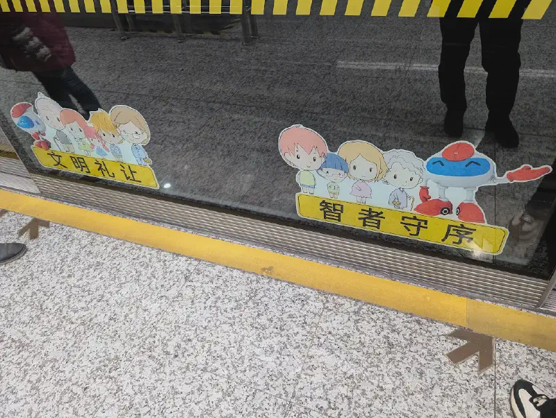 地下鉄のホームドアには「文明礼让,智者守序」と書かれてます.中国にはまだまだ降りる人を優先せず、我先に乗ろうとする人が多いです.