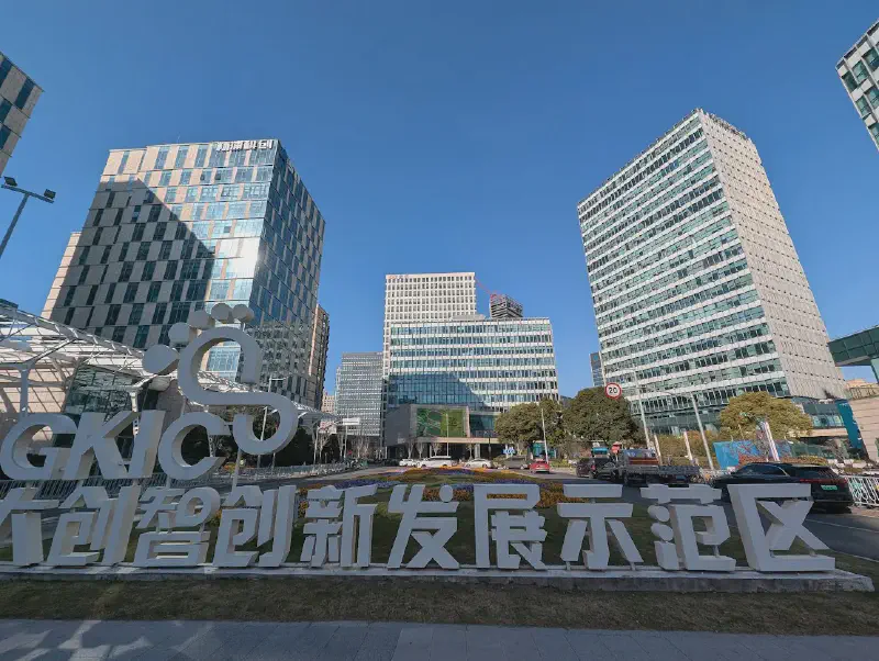 このあたりは「大创智创新发展示范园区」(大創智創新発展示範園区)という、言い換えればイノベーション発展のモデル地区らしいです.スタイリッシュなビルが多く建っていました.