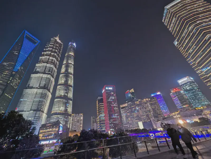 陸家嘴 (Lù jiā zuǐ) を下から見た景色です.