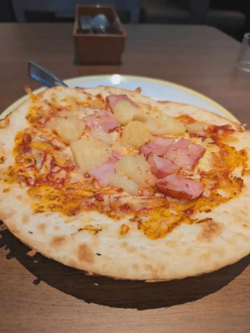 ピザとパイナップルの組み合わせ、案外良いですよ!日本には無いメニューです.